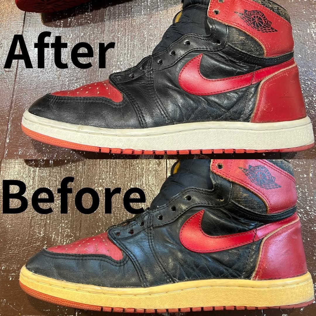 意外と忘れがちなのが、色合わせです。全体的に退色しているスニーカーなどはどこの色に合わせるのかを前もって明確にしておいてください。