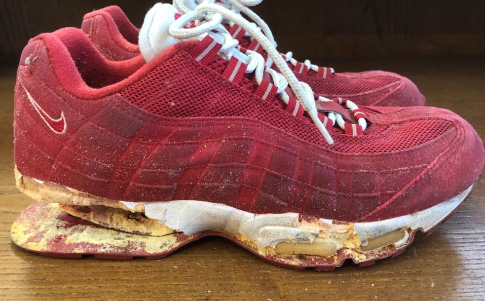 ナイキのエアジョーダン、エアフォースワンなどで特に多い修理依頼です。
