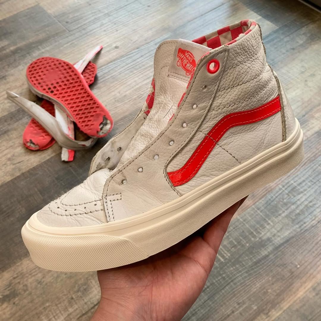 リーズナブルな価格で購入できるVANSのスニーカーですが、大切に長く使いたい場合や手に入りにくい限定モデルなど、修理をして長持ちさせてお使いいただくのをどうでしょうか。